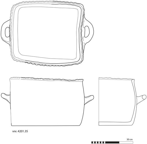 | 4b | steilwandige, rechthoekige bak (trog) met brede, aan de bovenzijde afgeplatte rand, standvlak |