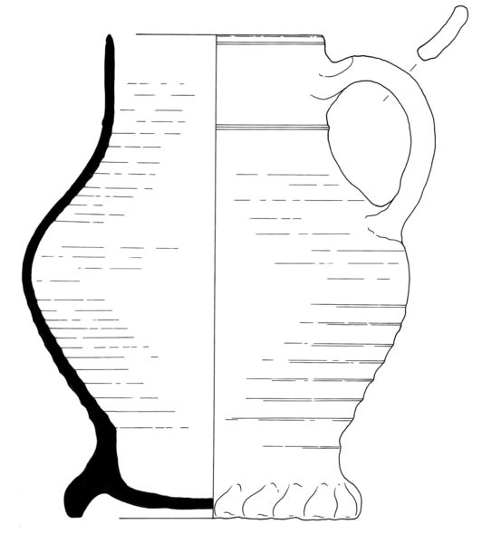 | 4b | bolle drinkkan met hoge schouder en cilindrische hals, ribben op halsaanzet, standring |