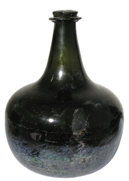 | 4b | bolvormige wijnfles met de grootste breedte aan de schouder, opgesloken bodem met pontilmerk |