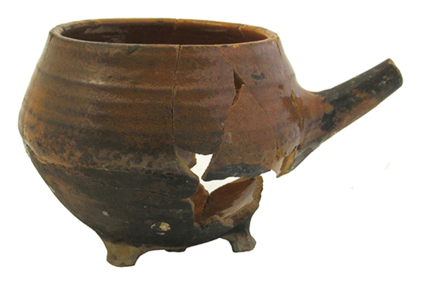| 5d diversen | buitenzijde sterk beroet, poten sterk gesleten, inwendig roerkrassen |