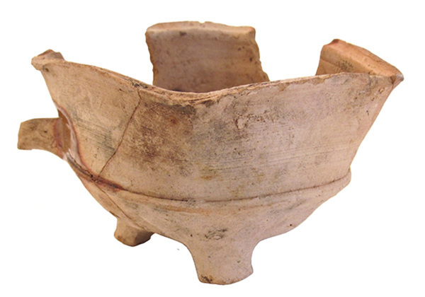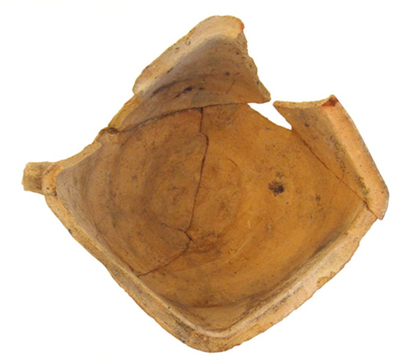 | 4b | vierkante vuurtest met scherpe knik bodem-wand en rand met aan bovenzijde een geultje, poten |