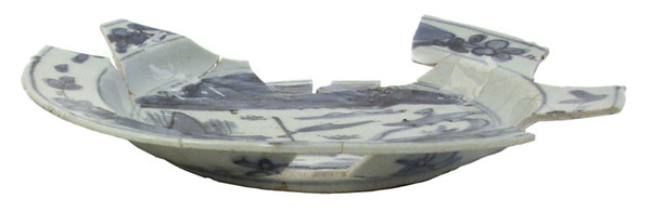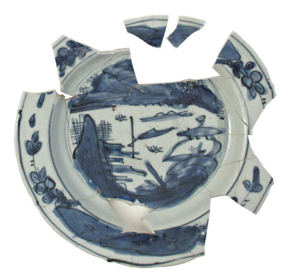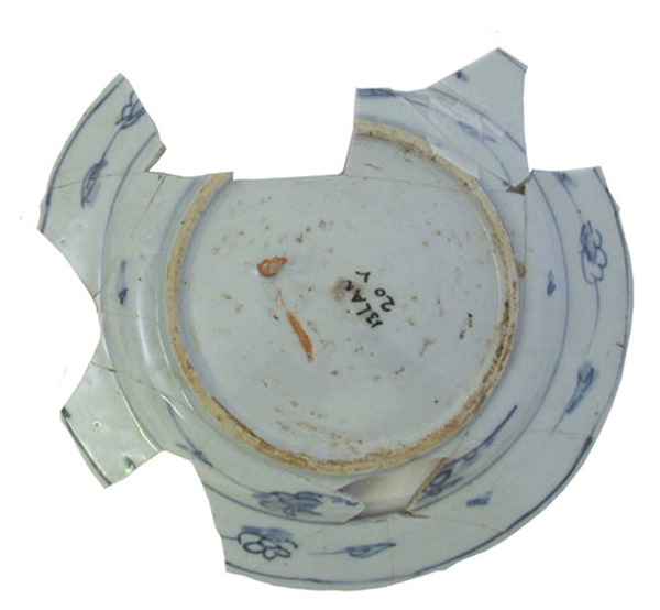 | 5c | spiegel: berglandschap binnen dubbele cirkel; vlag: tweemaal een floraal motief en accoladelijn langs de rand; onderzijde vlag: cirkels en bloemenslingers onderglazuur blauw |
