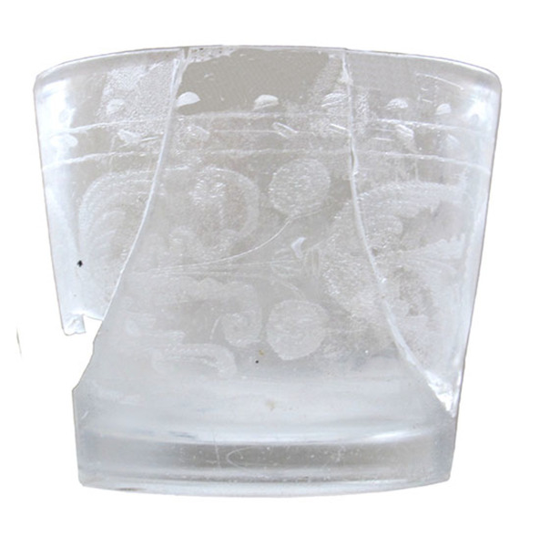 | 4b vorm | dikwandige conische beker (a), met vormgeblazen reliëf met verticale ribben (b), onderaan meerzijdig of met geslepen facetten (c), verdikte bodem met standvlak met (eventueel weggeslepen) pontilmerk |