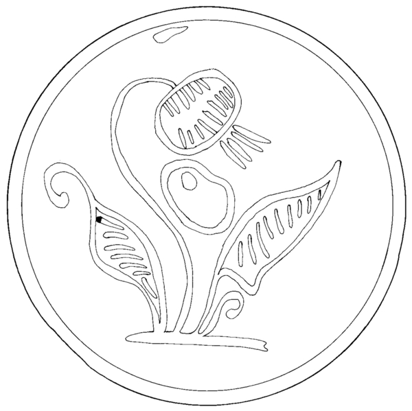 | 5c decoratie | uitwendig: in gele slib een soort kievietsbloem op grondje |