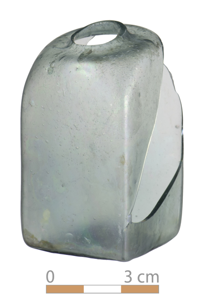 | 4b | kleine vierzijdige fles, kleiner dan 13cm, zonder of met korte hals met uitstaande lip, standvlak of opgestoken bodem met pontilmerk |
