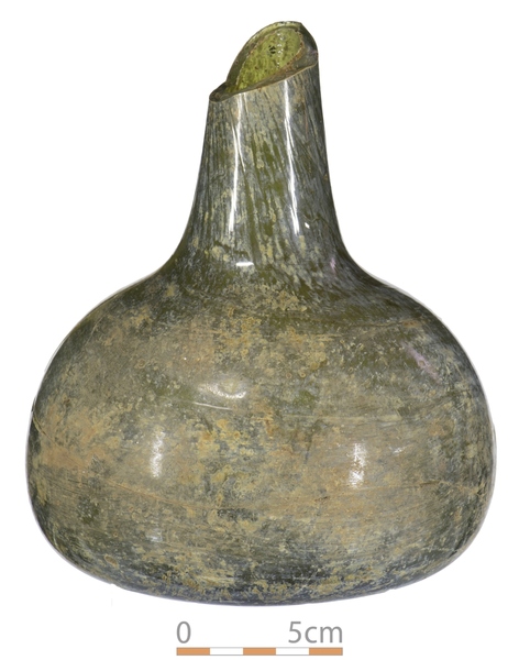 | 4b | bolvormige wijnfles met een uitgezakte buik (uivormig) en een conische hals met een afgeplatte lip, conisch opgestoken bodem met pontilmerk |