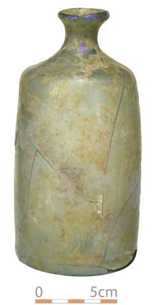 | 4b | cilindrische medicijnfles zonder- of met korte hals met uitstaande lip, opgestoken bodem met pontilmerk |