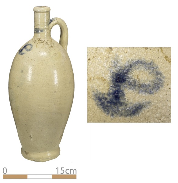 | 5c decoratie | uitwendig kobalt filet op hals en P op schouder |