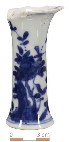 | 4b | slanke, bovenaan wijd uitlopende vaas, standring |