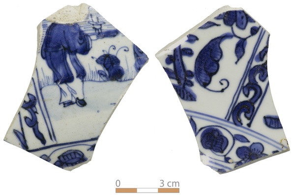 | 5c decoratie | blauw beschilderd: uitwendig figuratieve panelen, inwendig florale panelen, Wanli |