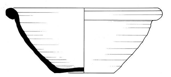 | 4b | wijde steilwandige kom met ingesnoerde hals en verdikte afgeronde rand, standvlak |