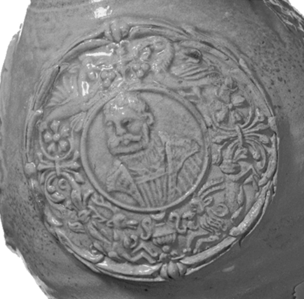 | 5c decoratie | 3 verschillende appliques, edelman in band met fabeldier of bladwerk |