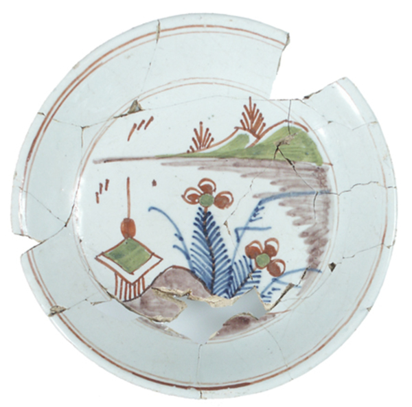 | 5c | inw: in onderglazuur blauw en groen en boven glazuur rood: natuurlandschap polychroom |