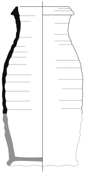 | 4b vorm | hoge, iets buikige beker met kleine driehoekige (kraag)rand, geknepen standring |