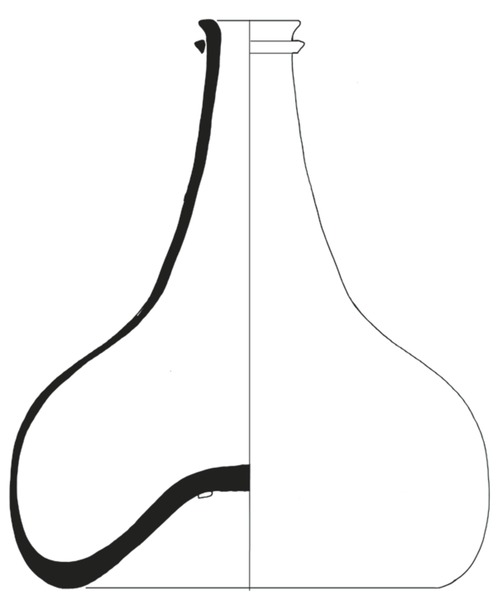 | 4b | bolvormige wijnfles met een uitgezakte buik (uivormig) en een conische hals met een afgeplatte lip, conisch opgestoken bodem met pontilmerk |
