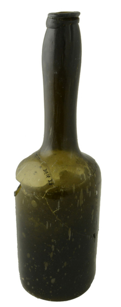 | 4b vorm | cilindrische tweedelig vormgeblazen wijnfles met lange hals, met draad om de lip (a) of met afgewerkte lip (b), opgebolde bodem |