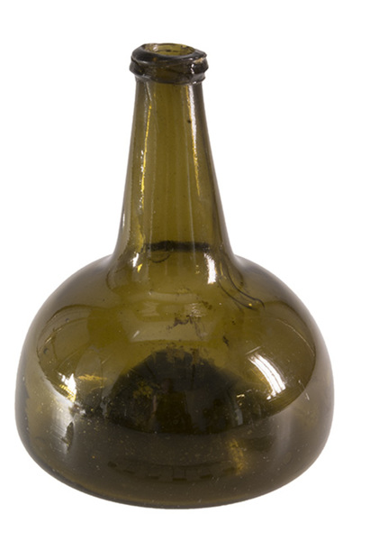 | 4b | bolvormige wijnfles met lange conische hals en uitgezakte buik met grootste breedte aan de basis, conisch opgestoken bodem met pontilmerk |