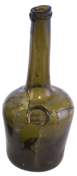 | 4b | licht conische wijnfles met lange hals, afgeronde schouder, vormgeblazen, opgestoken bodem met pontilmerk |
