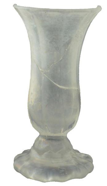 | 4b vorm | trompetormige beker met verticaal ribbenpatroon, dikke geribde massieve voet met pontilmerk |