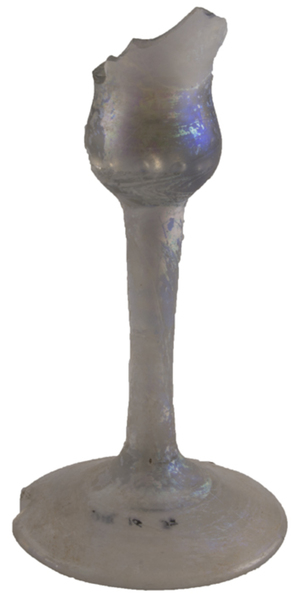 | 4b | dikwandig klokvormig kelkglas met dikwandige bodem, rechte stam, voet met pontilmerk, diverse sieruitvoeringen van stam |