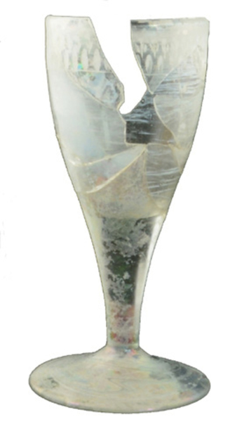 | 4b vorm | toegebogen trechter- of eivormig kelkglas met dikwandige bodem overgaand in rechte massieve stam, ook met luchtbel of spiraalvormige draadversiering, schijfvormige voet met pontilmerk |