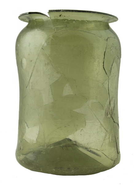 | 4b vorm | cilindrische pot met korte ingesnoerde hals en uitstaande lip, opgestoken bodem met pontilmerk |