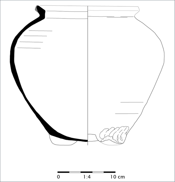 | 4b | bolle pot met hoge schouder en afgeronde kraagrand, lobvoeten |