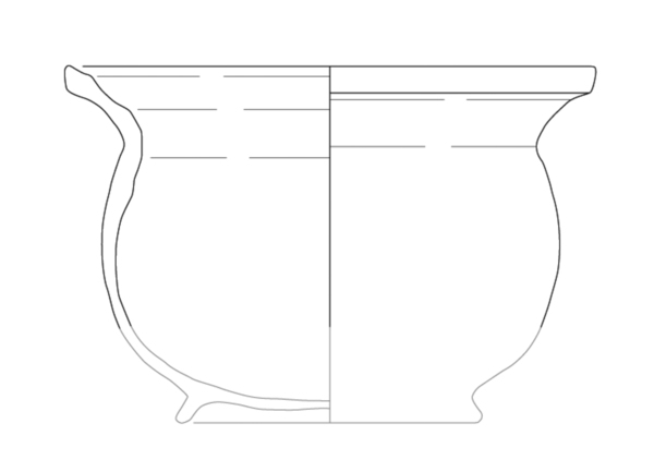 | 4b | bolle kom met ingesnoerde hals en uitgebogen, aan bovenzijde afgeplatte rand, standring |