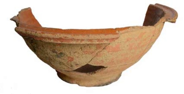 | 4b | bolle kom met haaks naar buiten geknikte rand, aan buitenzijde aangedrukt, standring |