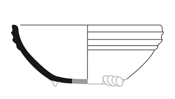 | 4b | bolle kom met hoge kraagrand met ribbels, lobvoeten |