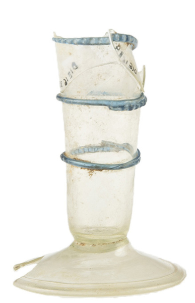 | 4b vorm | conisch stangglas met draadwindingen, hoge voet met pontilmerk |