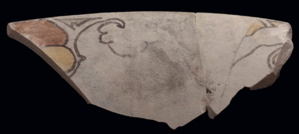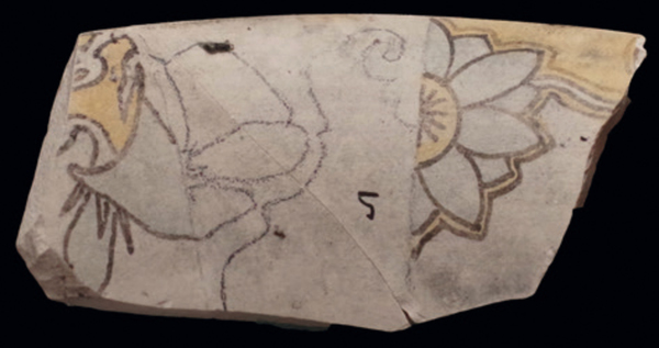 | 5c decoratie | decor in waterverf, floraal motief |