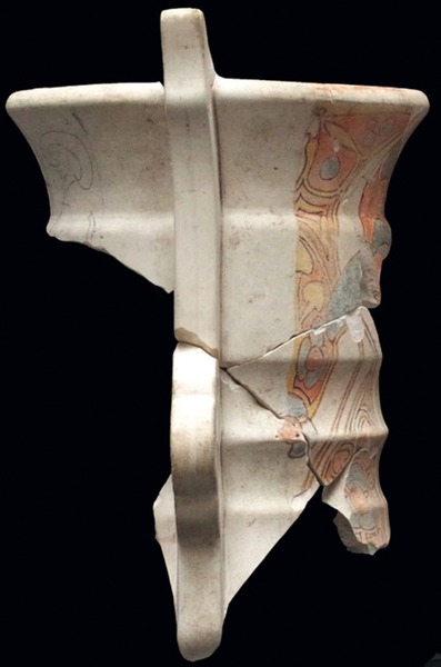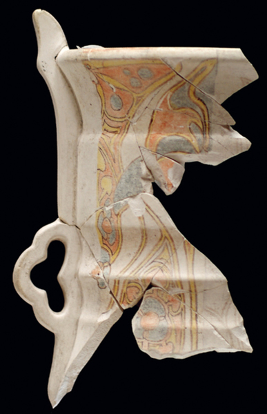 | 5d diversen | hals van vaas; model 77 uit de verkoop catalogus van 1905 (nummer P1256827) x N.V. Faience- en Tegelfabriek 'Holland' |
