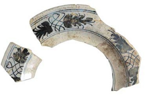 | 5c decoratie | blauwe beschildering; vlag: losse bladerenmotieven; onderzijde wand: kruisende bogen |