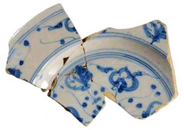 | 5c decoratie | blauwe beschildering; spiegel en vlag: Ju-i-motief; onderzijde wand: kruisende bogen |