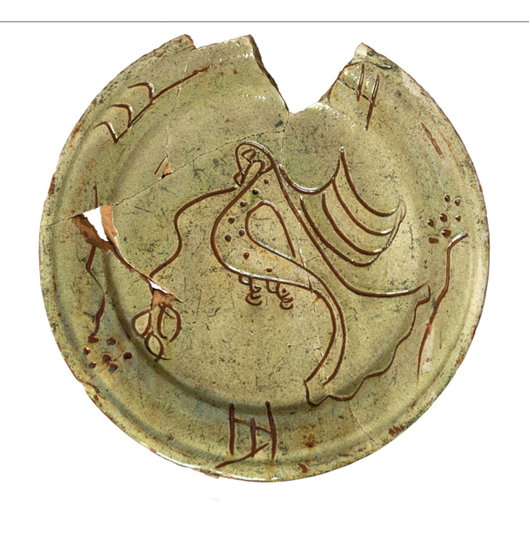 | 5c decoratie | inwendig sliblaag met sgraffito decoratie: vogel op spiegel |