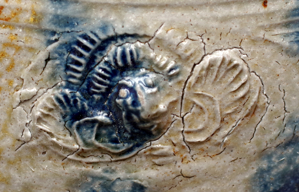 | 5c | kleine applique met cherubijn, op en rond applique enkele kobaltblauwe vlekken blauw |