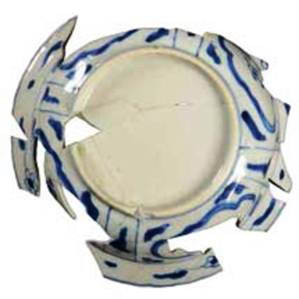 | 4b | ondiepe bolle kom met naar buiten geknikte gekartelde rand, standring |