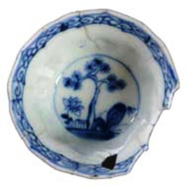 | 5c decoratie | blauwe beschildering; bodem inwendig: landschap; wand uitwendig: repeterend patroon |
