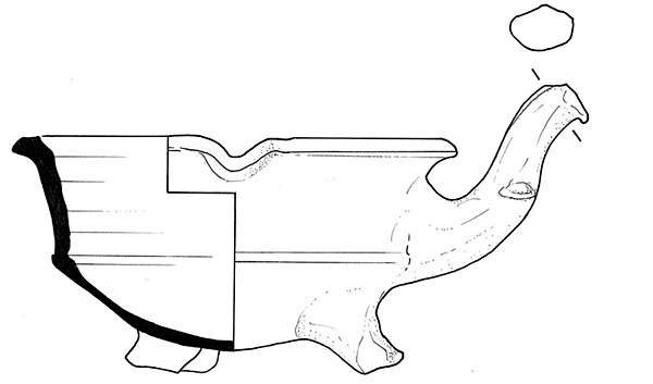 | 4b | steelkom met scherpe knik bodem-wand en uitgebogen rand met dekselgeul, poten |