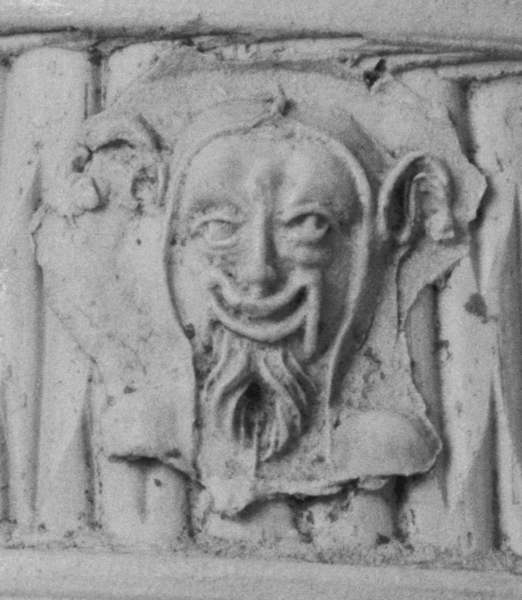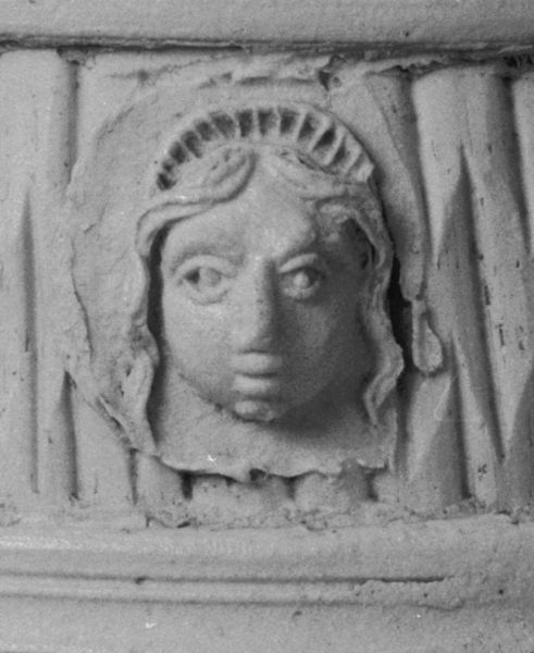 | 5c decoratie | uitwendig: wafeldecor, vrouw- en narrenkop op hals |