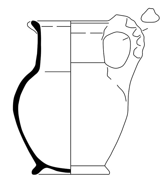 | 4b | peervormige kan met vloeiende overgang van buik naar taps toelopende hals, uitgebogen rand, standring |