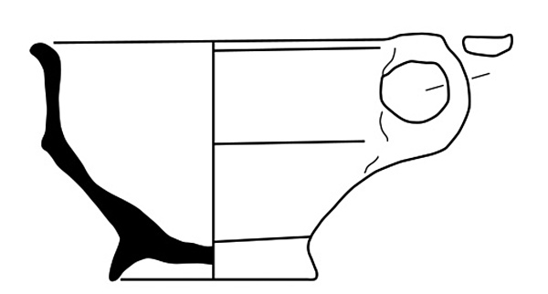 | 5c decoratie | inwendig: witte sliblaag, op buitenzijde rand: ringeloor S-jes |