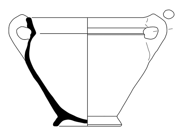 | 4b | wijde peervormige pot met ribbel op aanzet rand en (brede) kraagrand, standring |