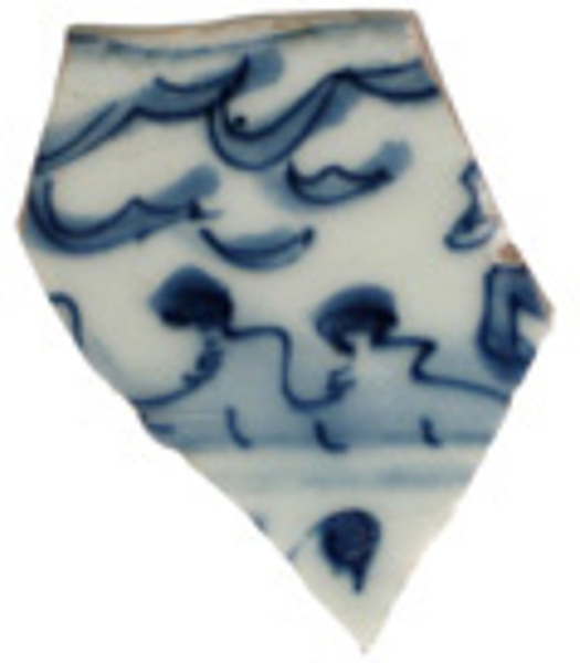 | 5c | vliegende paarden boven een woeste zee onderglazuur blauw |