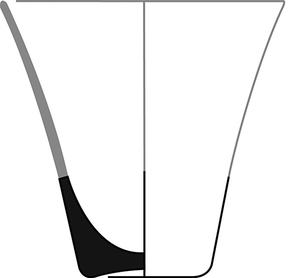 | 4b | cilindrische bovenaan uitlopende (a) of cilindrische (b) beker, ook met verdikte bodem licht opgestoken standvlak of standring |