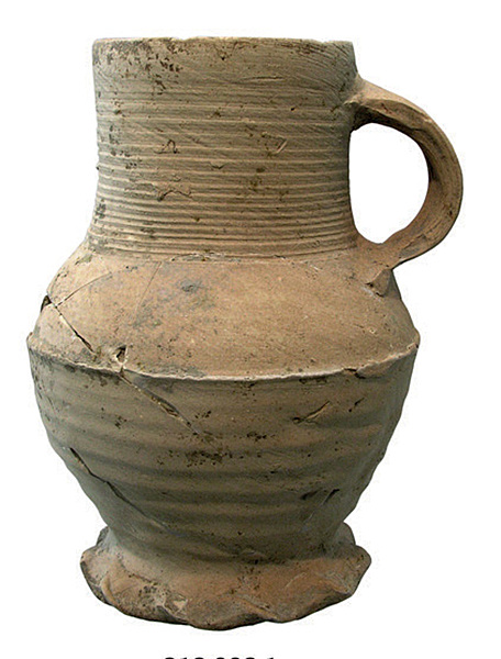 | 4b | biconische kan met buikknik met ribbel en hoge hals met rechte rand, op standring |