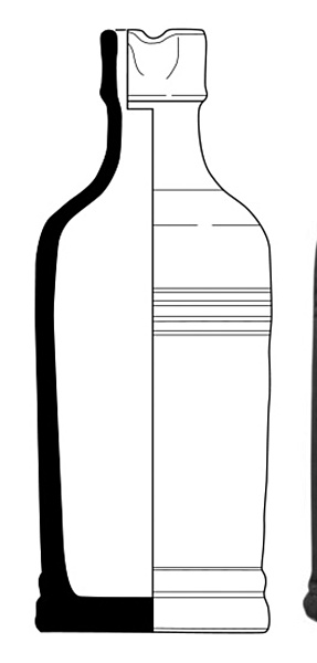 | 4b vorm | cilindrische fles met knik wand-schouder, convexe schouder/hals, manchetrand, standvlak |