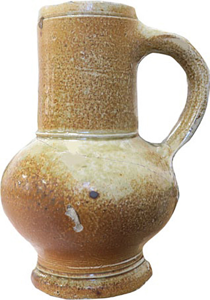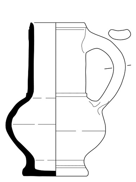 | 4b vorm | kan met afgeronde buikknik en iets toelopende hals met ribbel op halsaanzet en groef onderlangs rand, standvoet |