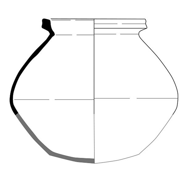 | 4b | kogelronde pot met verdikte (vierkante) aan bovenzijde afgeplatte rand, lensbodem |